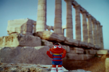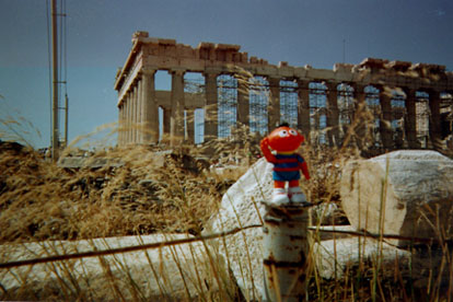 Here's the Wee Ernster at the Acropolis in Athens, repairing the Parthenon in the background.