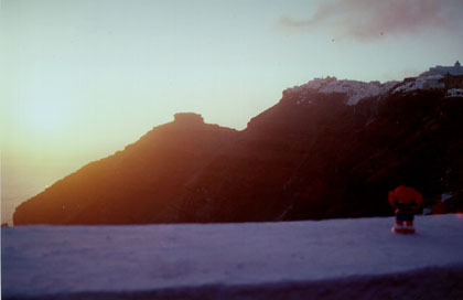 Here's the Wee Ernster gazing at a sunset in Santorini.